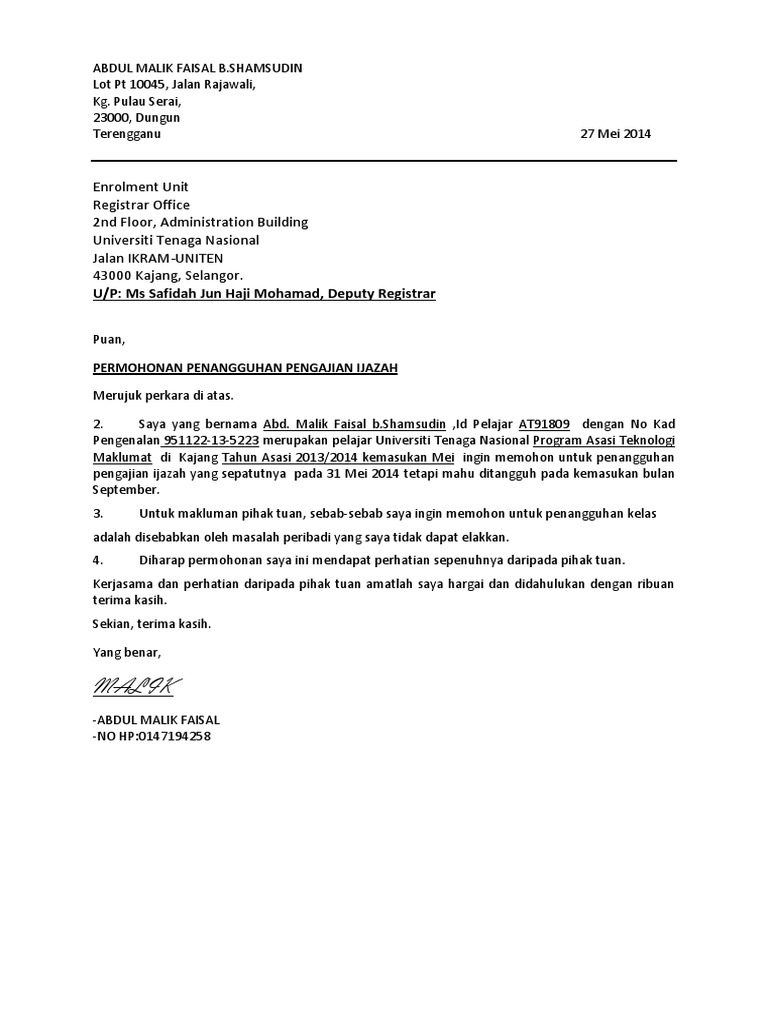 Contoh Surat Rasmi Permohonan Penangguhan Lapor Diri Kumpulan Contoh Terbaru